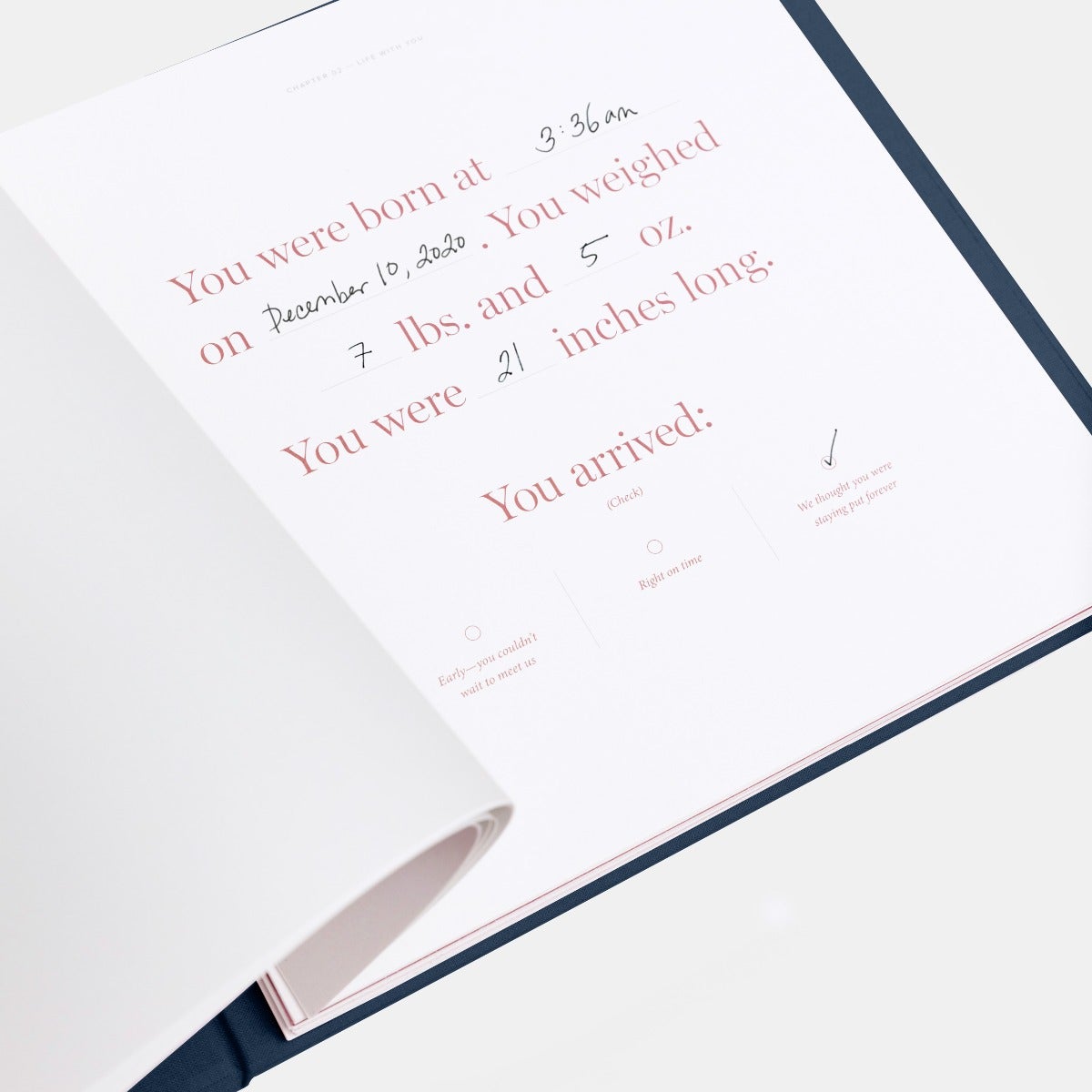 A tradition made modern and easy, The Story of You Baby Book is a unique, interactive baby photo journal filled with considerate prompts to help you document your baby's first year. From the birth story to the mini-milestones of each month, there’s a place for you to record the moments that matter most. Celebrated for its timeless design and premium materials, this baby memory book will preserve your family’s story for years to come. Perfect for capturing precious memories and milestones, this baby journal is a cherished keepsake.