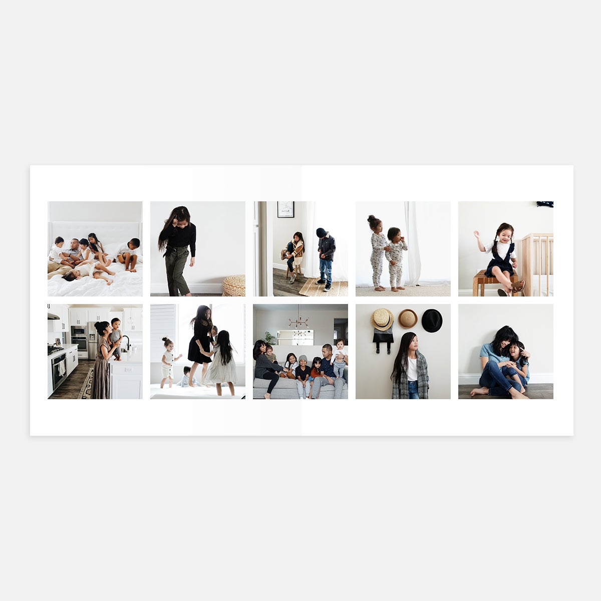Often times, the best panoramic shots come from landscapes and cityscapes captured on the road. While our Layflat Albums offer full-page spreads, most photo books with traditional "perfect binding" require you to get a little more crafty to incorporate those wide aspect ratios. We recommend mocking this panoramic effect with a series of four photos that span across the spread, aligned to the spine in the middle.